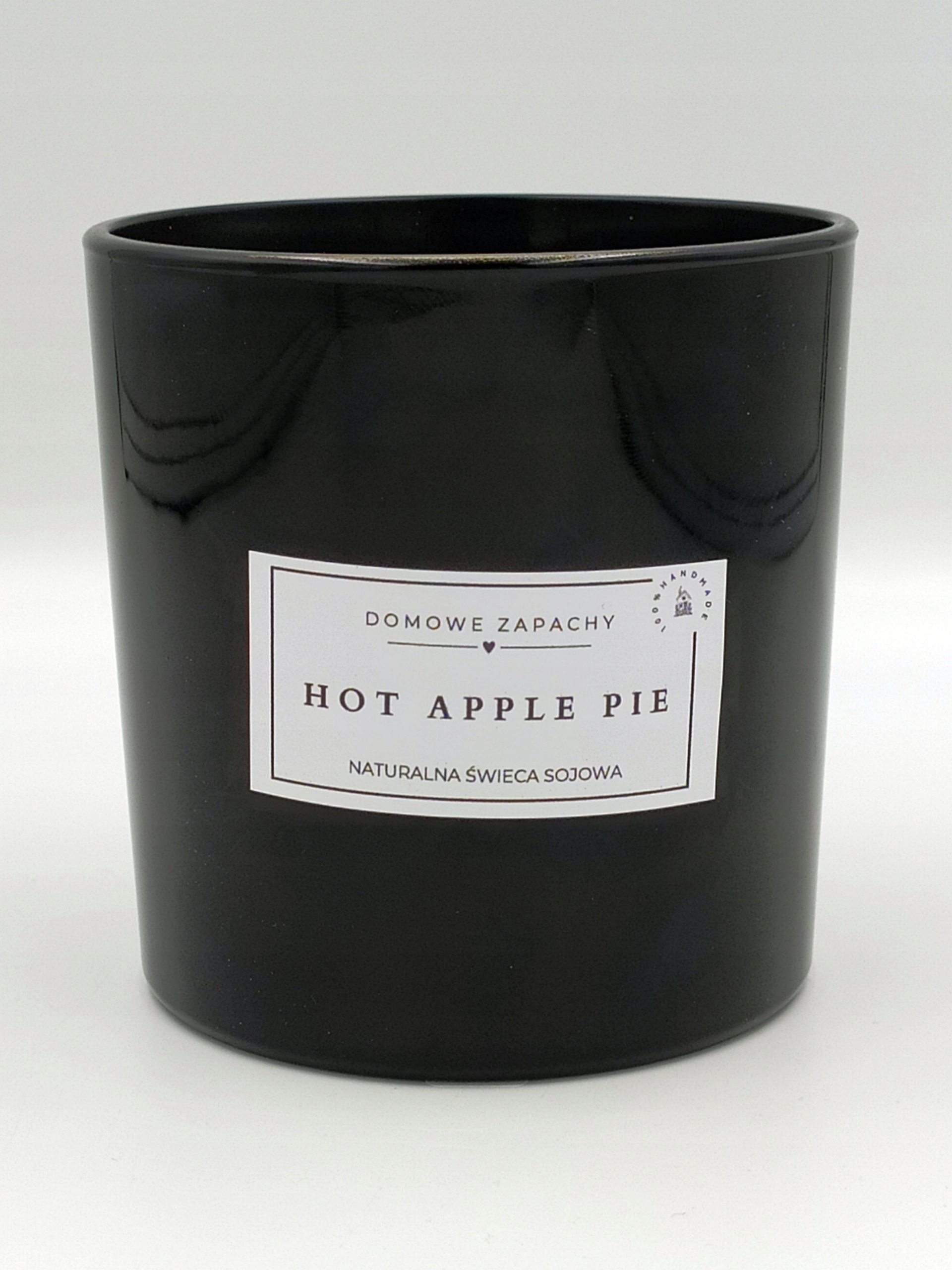 Naturalna świeca sojowa 350 ml – HOT APPLE PIE – Zapach domowego ciasta jabłkowego | 2 knoty | Czarne szkło z połyskiem | Ręcznie robiona